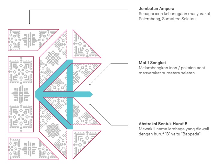 Bentuk busur panah dalam ruang negatif melambangkan target dan tujuan lembaga yakni mewujudkan lembaga perencanaan yang handal dalam mendukung percepatan pembangunan daerah. Abstraksi bentuk huruf B mewakili nama lembaga yang diawali dengan huruf B yaitu Bappeda. Jembatan ampera dijadikan sebagai icon pembangunan kebanggaan masyarakat Palembang, Sumatera Selatan. Serta motif songket melambangkan icon / pakaian adat Sumatera Selatan.
